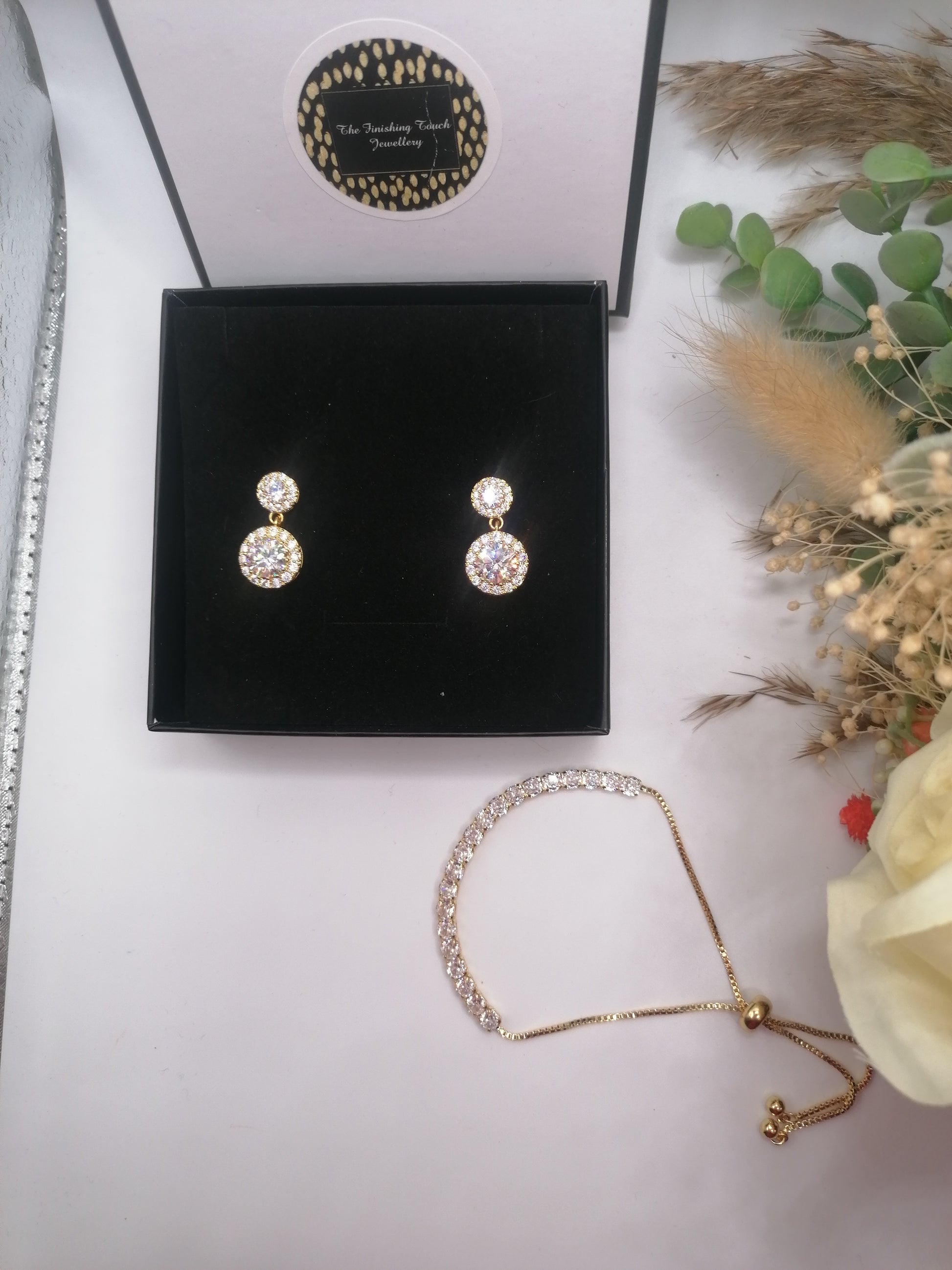 These shiny crystal geometric cubic zirconia earrings add subtle sparkle to brides and bridesmaids alike.  Teamed with our Betty Bracelet perfect for adding an understated sparkle,