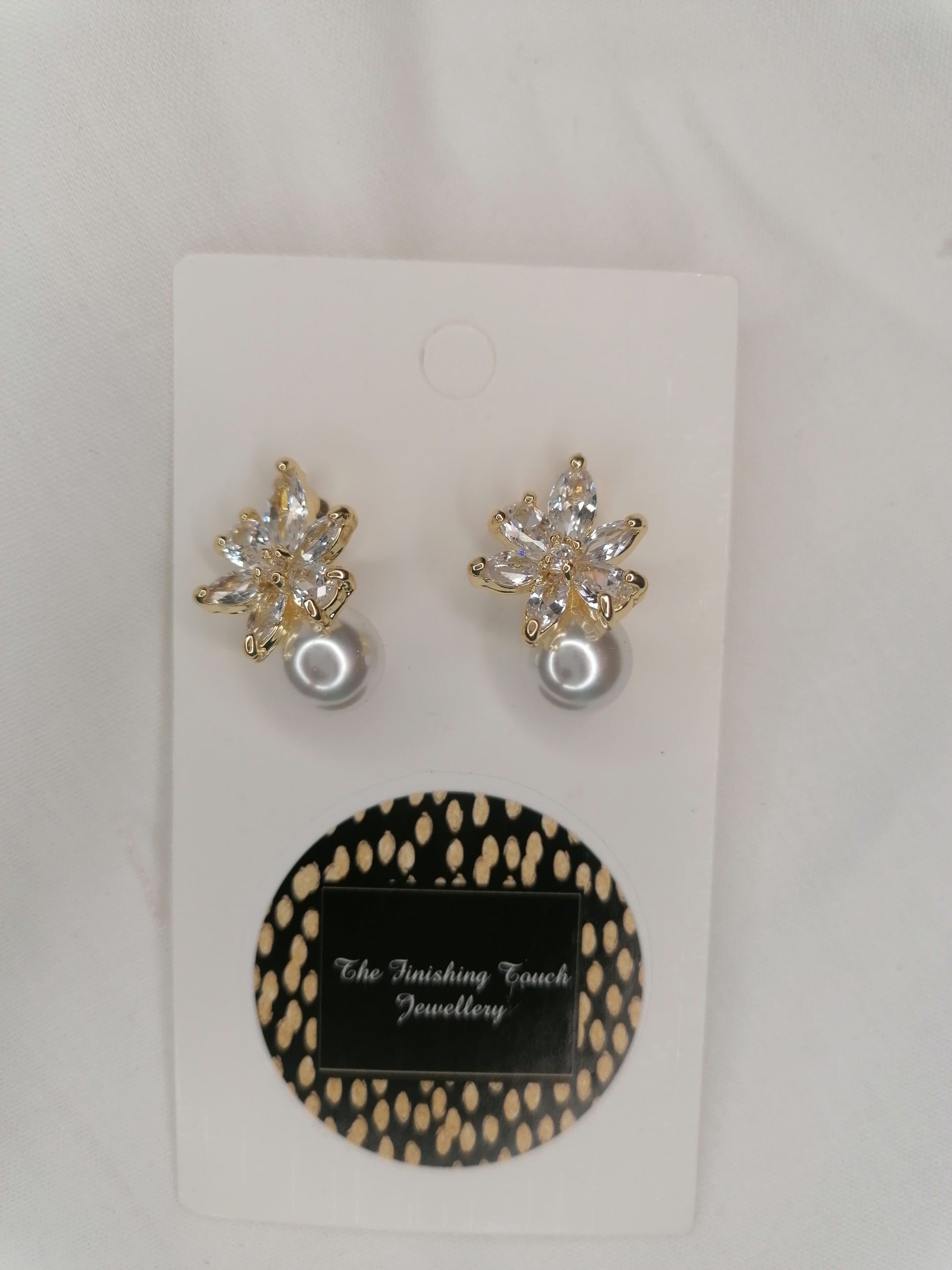 A luminous ivory pearl sits beneath a cluster of sparkling CZ crystals in these pretty earrings. The perfect pair for the bride or bridesmaid wanting a unique and elegant earring without any movement.